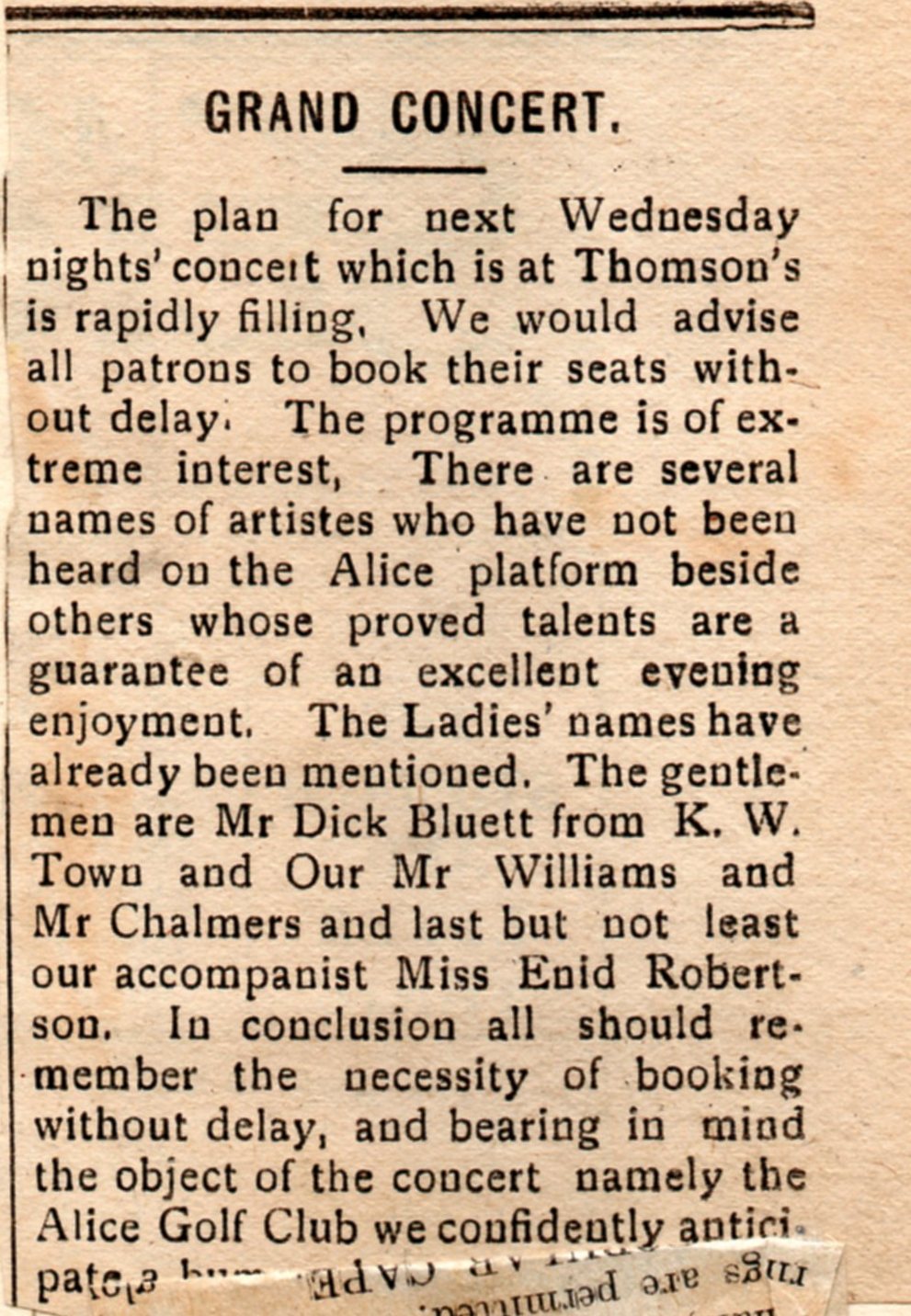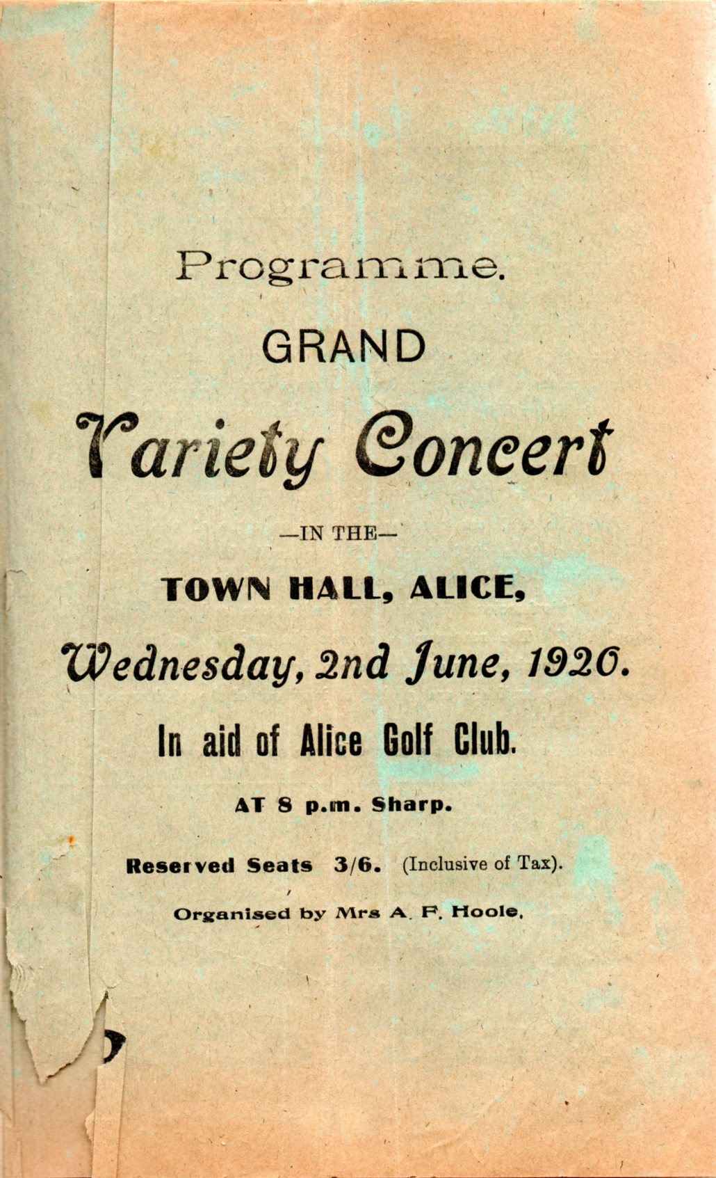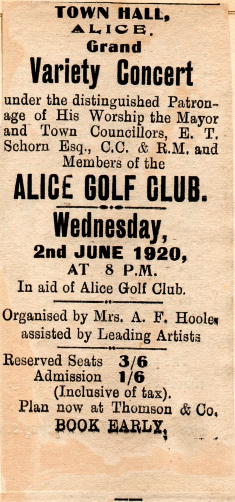 Town Hall, Alice, in aid of the Alice Golf Club. The event was organised