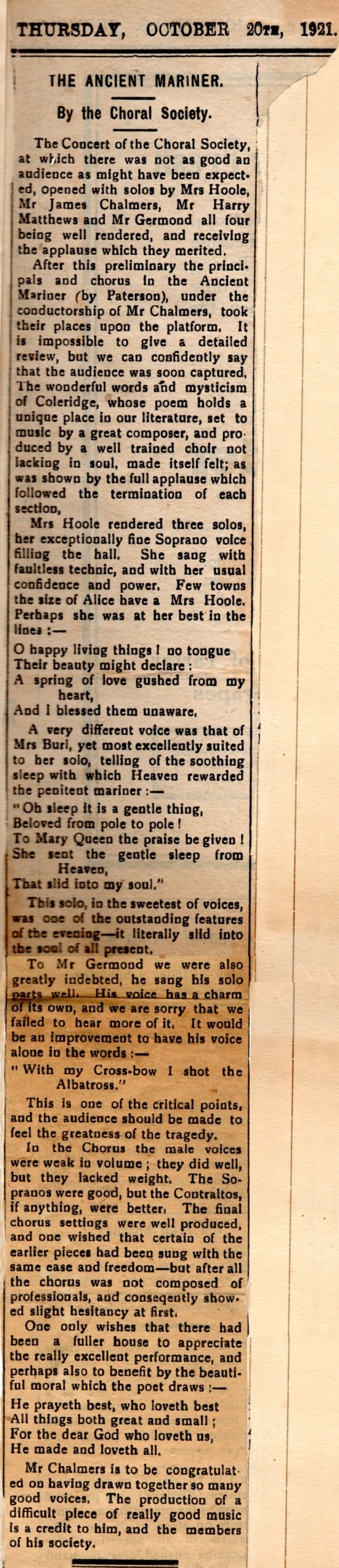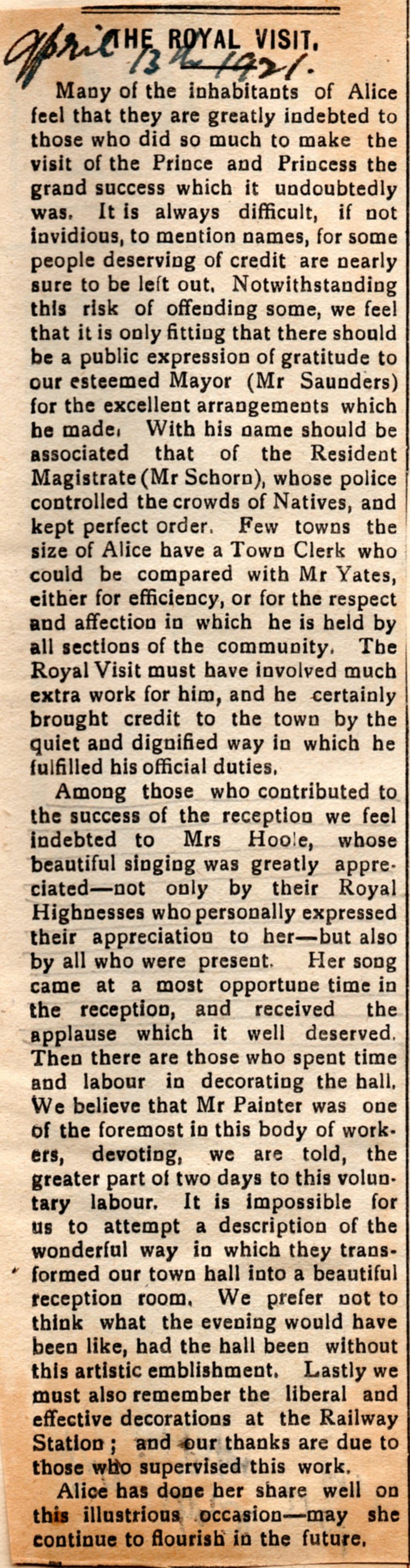 power. Few towns the size of Alice have a Mrs Hoole. ... This solo, in the