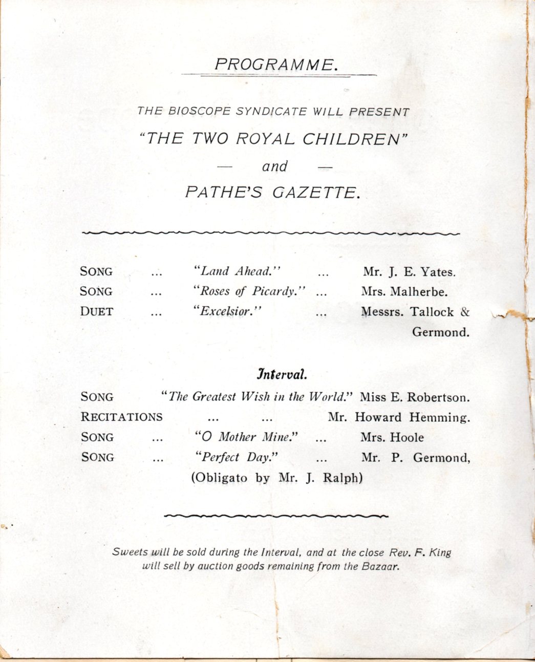 In May 1922 The Bioscope Syndicate presented two films, The Two Royal