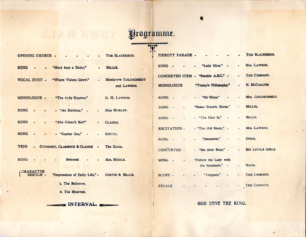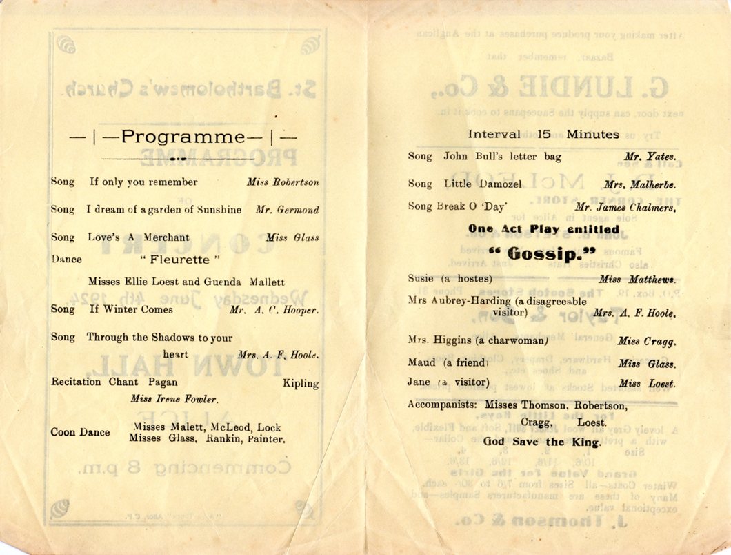 appears to have been a musical theatre review. Mrs Hoole contributed one